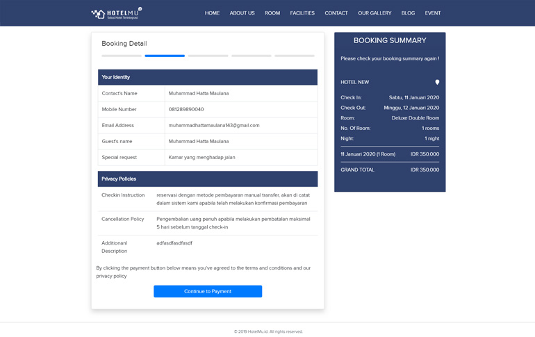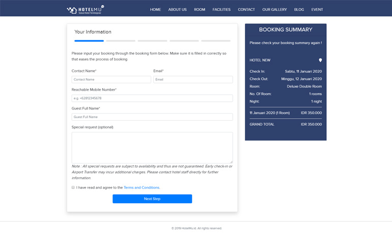 Dapatkan layanan full HotelMU Website dan Booking Engine dengan harga murah, Seperti : Domain hotel anda sendiri, Integrasi dengan Aplikasi Hotel, Free Payment Processor, Pilihan Pembayaran Kamar yang banyak, dan Kemudahan Lainnya.